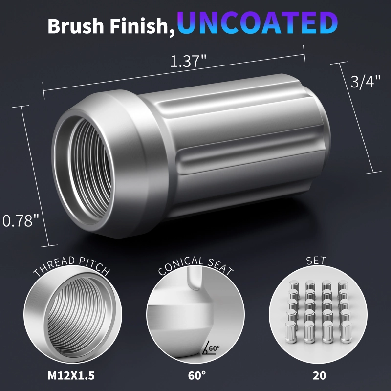 Home > Titanium Lug Nuts > M12X1.5 > TIRYTU Titanium Spline Lug Nuts M12x1.5 - 20pcs Closed End Ultralight Wheel Nuts | High-Strength Corrosion-Resistant Titanium Alloy | OEM Replacement with Spline Socket Key